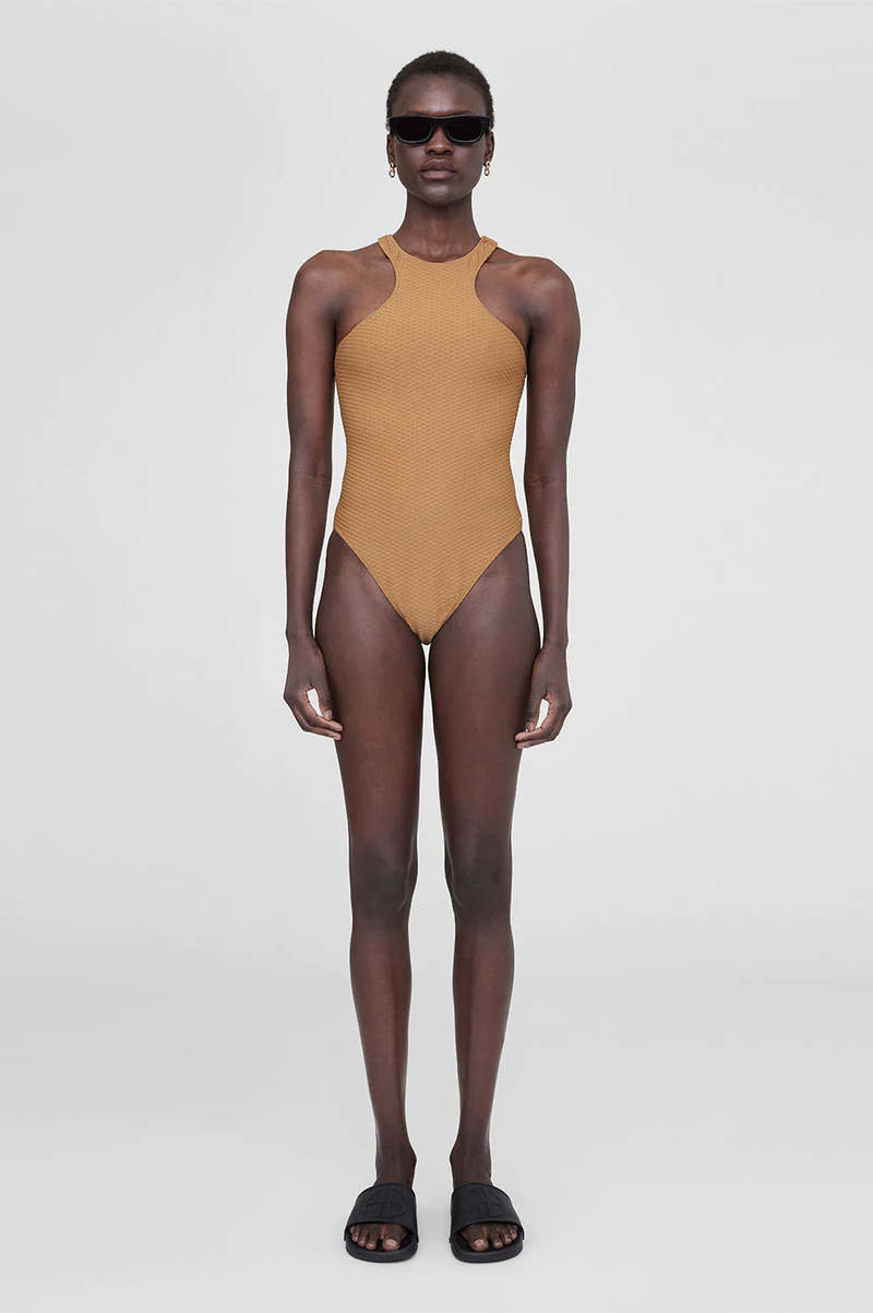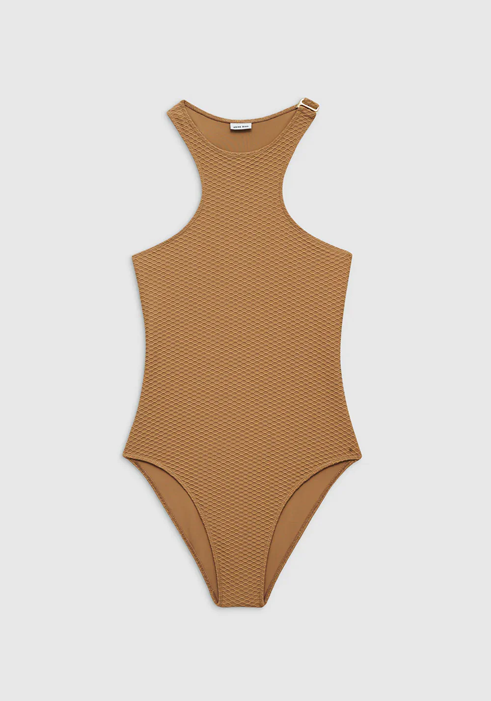 With its flattering fit and sophisticated camel color, this one-piece is perfect for lounging by the pool or making a statement at the beach. The minimalistic design and high-quality fabric ensure both style and durability. For a limited time, enjoy an exclusive discount on the Anine Bing Morgan One Piece. Donβt miss out on this chic, must-have addition to your swimwear collection β grab yours today!