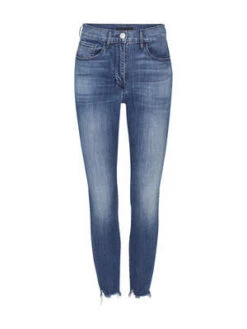 The 3X1 W3 Skinny Crop Jeans are a mid rise style with a short inseam and distressed details at the hem. Made from a super stretch denim for incredible comfort this mid blue denim jeans will become your wear everyday pair.