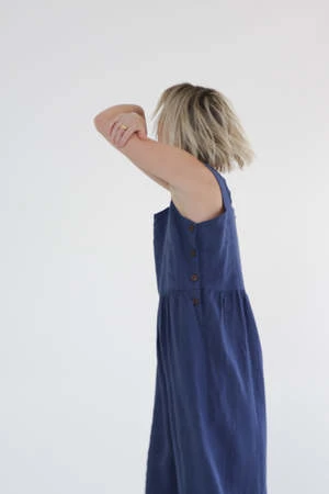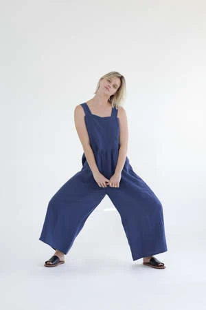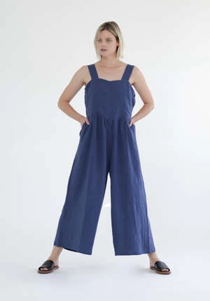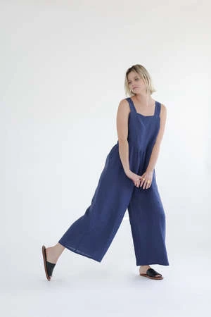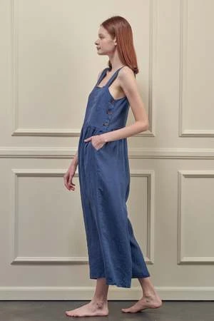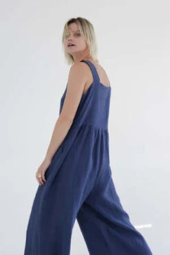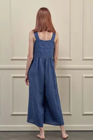 Linen strap jumpsuit. This is a square neck and wide straps.