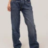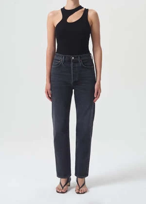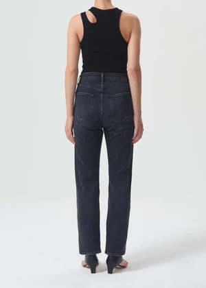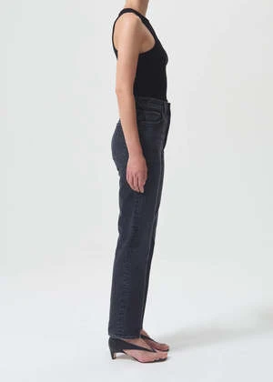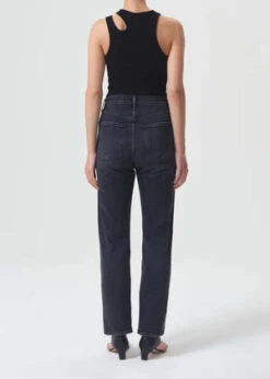 Crafted in a low stretch denim, this classic high rise straight features a slim leg designed to elongate your frame. Pair back with a cropped tee or bodysuit.