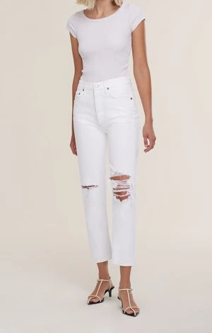 Agolde’s signature straight leg. With a better-than-vintage aesthetic, the Riley is an iconic brand favourite. The flattering high-rise and straight leg hold close to the body for a universally loved look. A cropped inseam makes these easy to style with anything from sandals to a heeled boot.