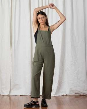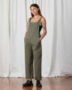 Fitted overalls with slightly tapered leg, in seam front pockets, side button closure and adjustable straps (can be crossed or straight). Inspired by classic 1970’s women’s overalls. Pre-washed and pre-shrunk.