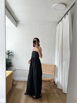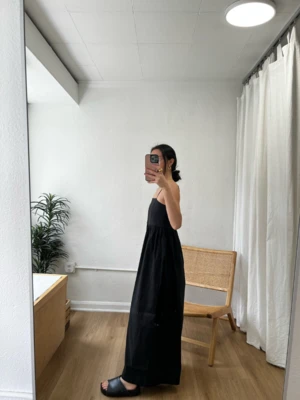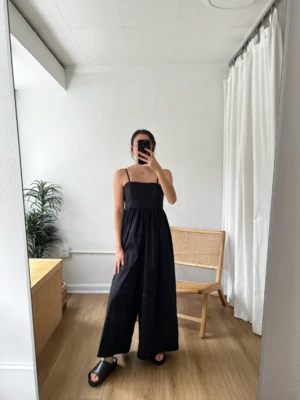A full legged jumper with square neck, adjustable spaghetti straps and backside zip up closure. Hidden side seam pockets.