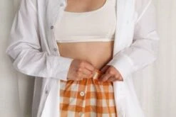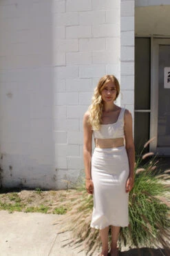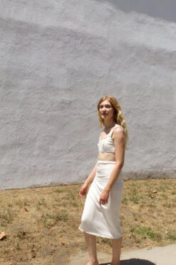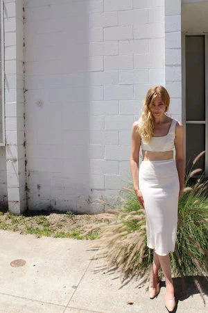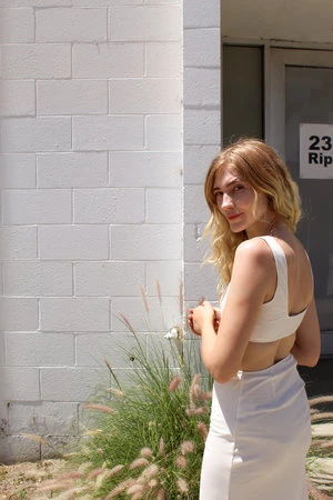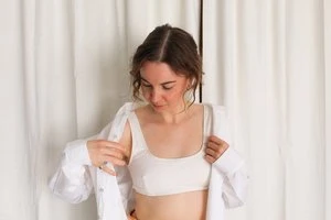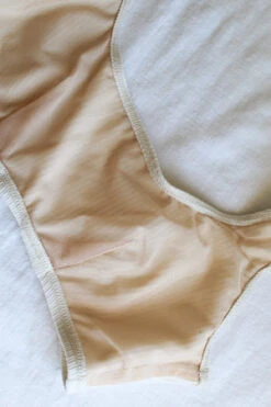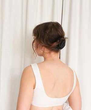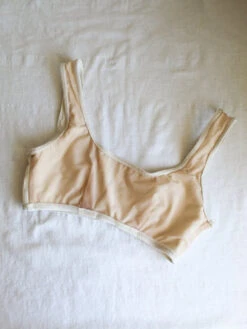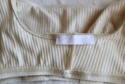 Angie Bauer soft alabaster ribbed bra top with soft mesh lining. Snug elastic fit.
