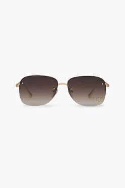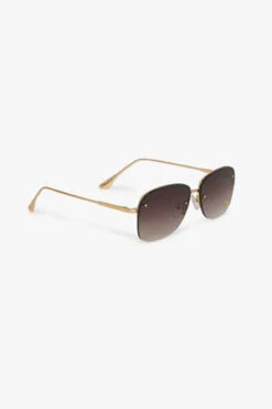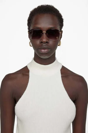 The Beverly Sunglasses feature a sleek, rimless shape in brushed gold-tone metal with gradient brown lenses. Accented with gold-tone ANINE BING monogram detailing.