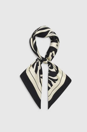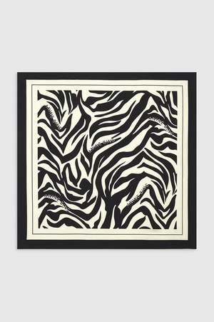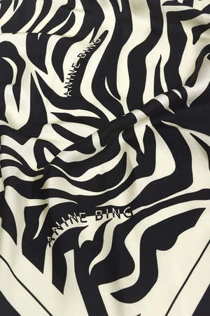 A square neck scarf crafted from 100% silk twill featuring a statement zebra print with subtle ANINE BING branding throughout.