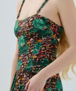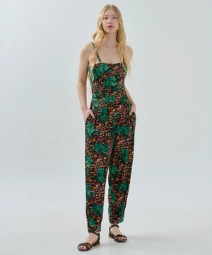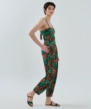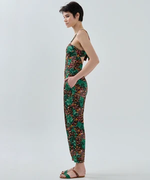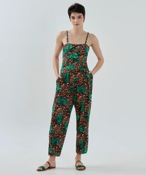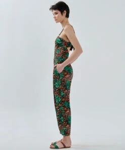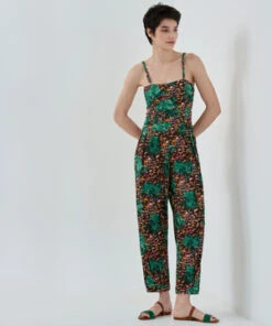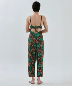 The day-to-night jumpsuit is perfect for a trendy summer look with beautiful bespoke paradise beach print detailing. This jumpsuit is made for you to feel free and loose. You can make it loose with the backside detail.