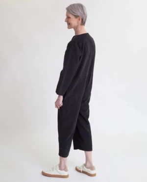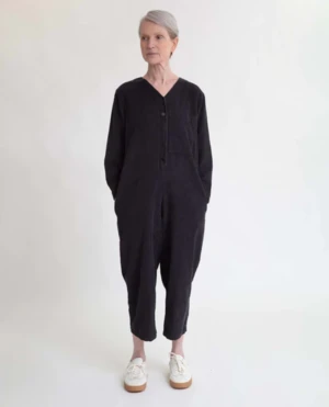 The Portia is a new style for Autumn. The jumpsuit has been made in a luxurious organic cotton cord with a button down front and chest pocket detail. Features pockets at the side and slightly cropped leg length.
