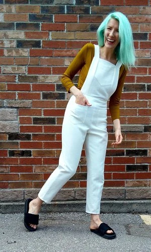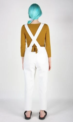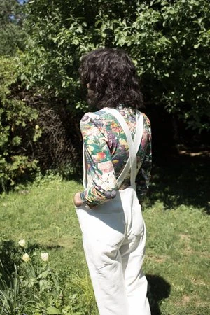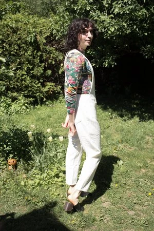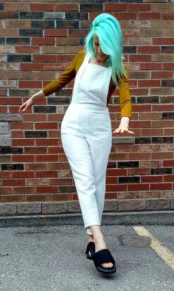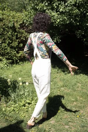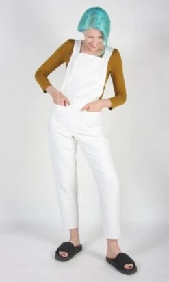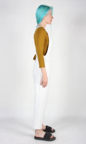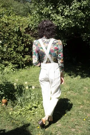 Birds of North America’s Astrilde Overalls are a pair of a tailored cotton overall with crossed back straps and a straight, tapered leg. The overalls close with a zipper at centre back and the legs feature both front and back pockets. Including the large pocket on the chest, that makes for five places to store whatever you need to! The fabric is a sturdy cotton with a beautiful crinkly texture light enough for warm weather wear. These would look great with a bright turtleneck or graphic tee underneath them paired with some chunky sneakers.