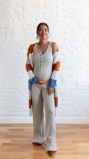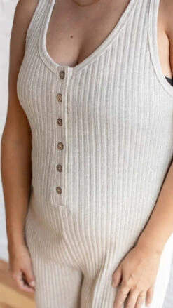 Weve done it! Weve found the jumpsuit you can thoroughly live in everyday and all day! The Blythe Jumpsuit is your classic lounge material in a cute full length jumpsuit. It has functional wooden buttons going up the torso and tank top style straps. Wear it on its own with some comfortable LeBon socks for around the house or throw a sweater over or turtle neck underneath it for a casual going out look! Either way you actually will wear it everyday!