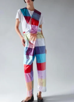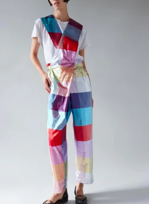 The Potter Jumpsuit is a criss-cross jumpsuit with a button closure at the back. Features an elastic, paper bag waistband and a straight leg for ease. The fit is generous and features a single back patch pocket.
