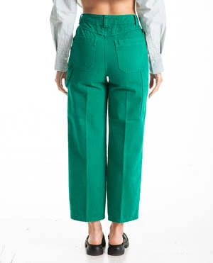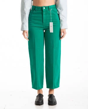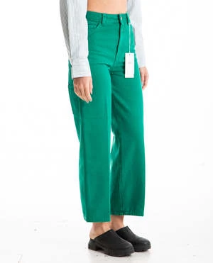Neige in green by Closed. Relaxed fit with a workwear inspired style, straight leg and cropped length. Made of strong Italian denim with a garment-dyed finish to create a subtle used look. Special structure on the inside.