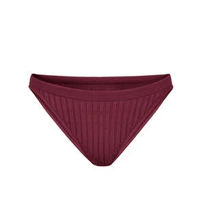 Rib-knitted low waisted brief. Accentuates natural curves on straighter figures. Offers medium more coverage.