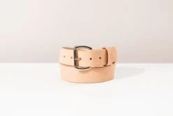 This belt is the first product we ever made and a “standard” for all wardrobes. Goes great with any outfit from casual to formal. Crafted to a 1.5″ width size and features a hand-sewn leather keep and burnished edges to protect the life of the belt. The Natural veg tan will darken over time to caramel brown color.