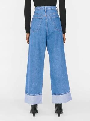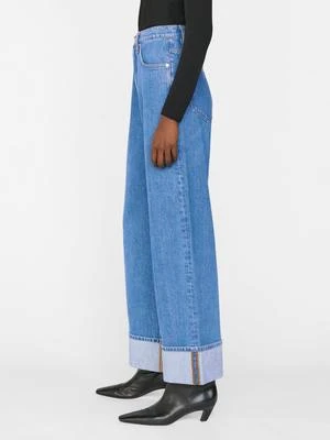 A fresh take on the loose denim moment, this high-rise, wide-leg fit features a rolled hem for showing off heeled boots or perfect the slouchy stacked look with loafers and platforms. Crafted from rigid denim in a clean, even blue indigo wash.