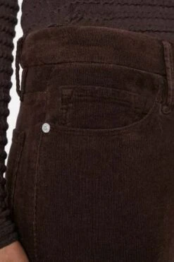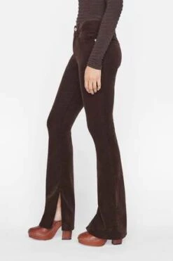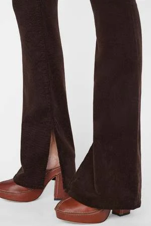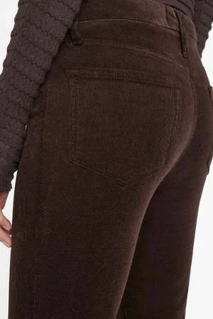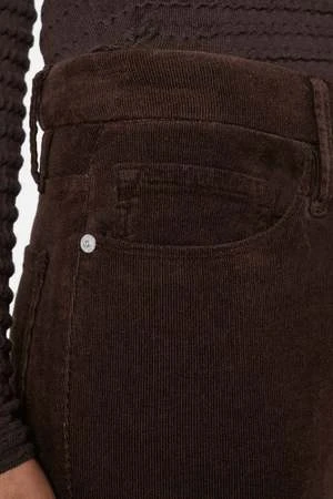 A FRAME signature jean with contour mid-rise waist, form-fitting silhouette at the hips, and slight bootcut kick at the knee, now available with peekaboo side ankle slits on the inseam. Crafted from a cotton modal mini corduroy for an ultra-soft feel.
