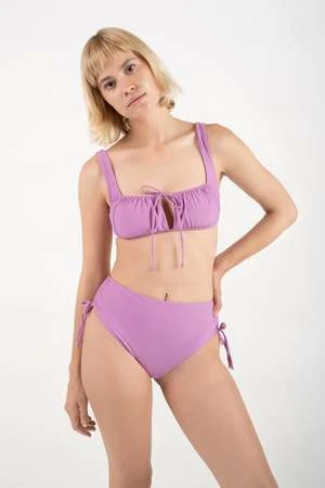 Ella wears the Chemise Bra with the Rouched Bottom. We also love this top paired with the Tie Brief, Curve Brief or High Kick.