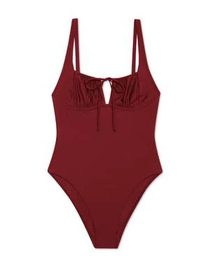 A best seller updated for the perfect fit. The Chemise One Piece is inspired by vintage underpinnings for a look that’s undeniably feminine and not fussy. This timeless swimsuit features comfortable adjustable shoulder straps and an open neckline with subtle ruched detailing. A delicate self-tie front and curved underbust seam provide a supportive lift. Moderate coverage at the back is complemented by a flattering high leg opening.