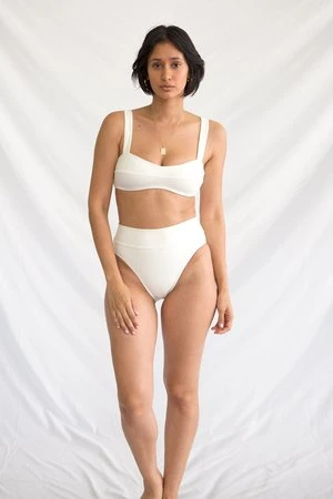 Legs for literal days; This high cut, high waist brief in a contemporary take on early 90’s swim styling. Featuring a broad, elastic-free waistband that supports at your natural waist with zero pinching.