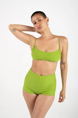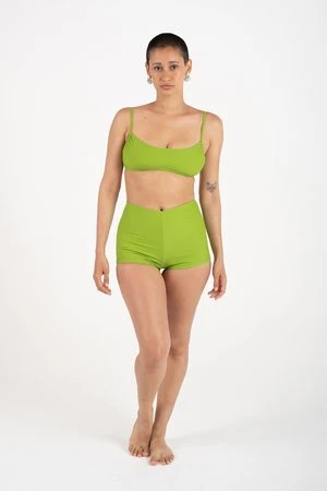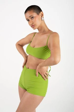 The Maude Top is a versatile bandeau-style separate featuring a strappy cross-tie closure, which can be worn tied at the back or front. Adjustable ruched detailing at the underarms allows for the perfect fit with extra room at the bust for maximum comfort. We love the Maude Top paired with the Tap Short, Tie Bottom, or High Kick for an effortless poolside look.