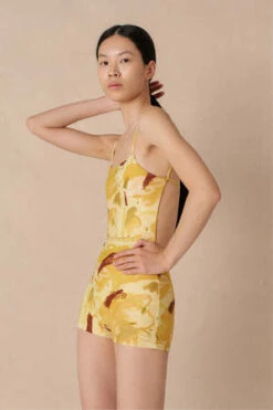 A modern take on a timeless 50s silhouette, the Terrain One Piece was designed to wear both in and out of the water. A feminine low back balances out the short style leg. A perfect piece for layering in and out of the water.