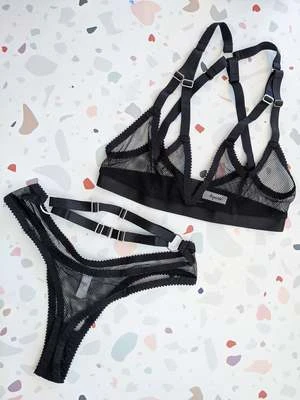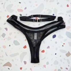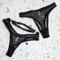 An 80s style cut with modern strap detail. The Blair Thong dips low at the front and back, and rises super high at the sides. The adjustable elastic strap detail further accentuates the waist.