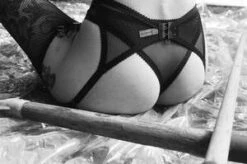 A vintage-inspired triangle suspender in soft black fishnet. 4 adjustable straps. So simple and sexy.