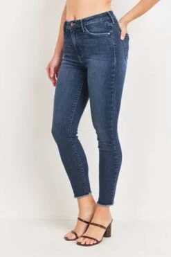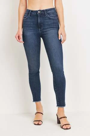 A mid-rise classic skinny in eye-catching optic white. This warm weather pair traces the length of your legs and features subtle fraying at the hems for a casual touch.