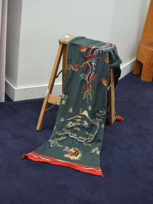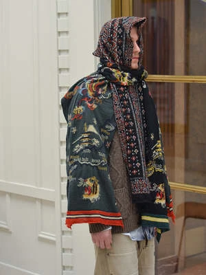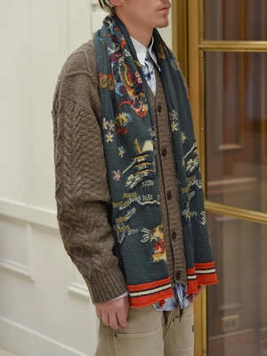 It’s soft with a surprisingly light feel, in a with symbols and locations representative of Japan. 72″ l x 24″ w. Unisex.