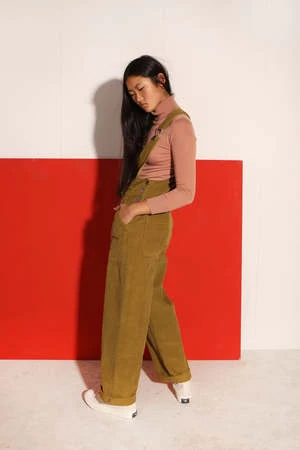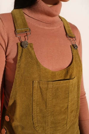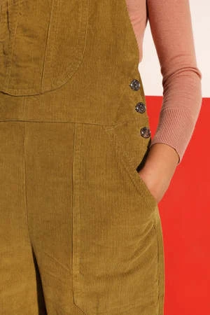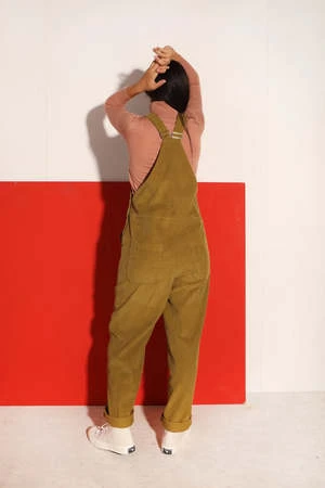 Corduroy overalls with metal clasps, silver buttons on the side, and utility-style pockets. Relaxed fit, true to size.