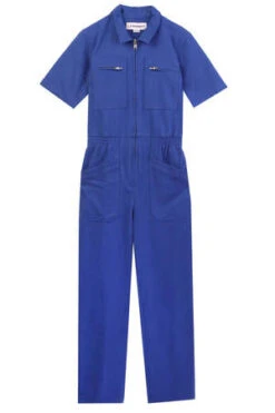 Our popular 70’s style Danny Boilersuit in cotton drill. With a metal front zip, workwear pocket details and an elasticated waist for a flattering fit, in their limited colour Cobalt.