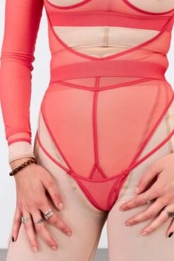The Seventeen micro thong in coral, by La Fille d’O, is a tiny design with a bold waistband. Designed for flat fit & layering. Shop the collection at Supernatural!