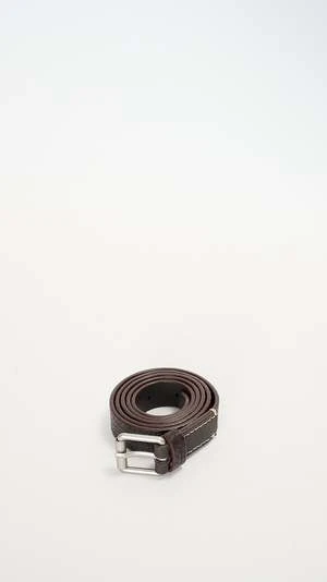 The Reversed Thin Belt is made of vegetable-tanned leather with a compact grain. At 2.5cm wide it features contrast stitching and a classic metal buckle.