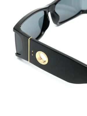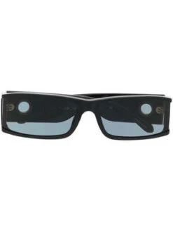 Mya rectangle-frame sunglasses from LINDA FARROW featuring black, rectangle frame, blue tinted lenses, cut-out detailing, engraved logo, straight arms and curved tips. All glasses from FARFETCH are sold as non-prescription frames.. These glasses come with a protective case..