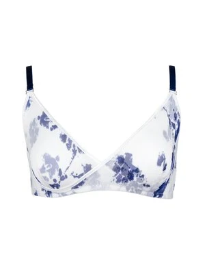 Our popular cross-over bra adorns itself in this exclusive Italian mesh featuring rich, dark blue hues splashed amidst summer whites. The cross-over design ensures proper lift and support while the dual adjustable straps in the back enable ease in finding a made-to-measure feeling.