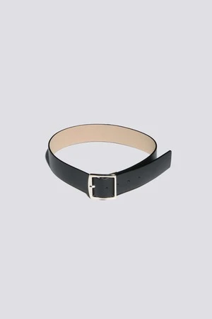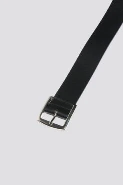 Black leather belt square silver metal buckle
