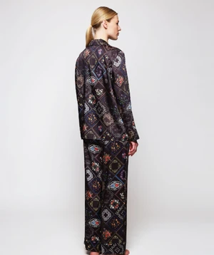 Pajama set with floral squares print. Shirt with lapels & long sleeve. Trousers with elastic waist & side pockets. Piping in collar, lapels, cuffs & hem. PJs to be worn at home or for an evening look – a versatile MIRTO style. 100%POLYESTER MACHINE WASH MAX.30ºC. DO NOT BLEACH DO NOT TUMBLE DRY LOW IRON MAX.110ºC.
