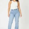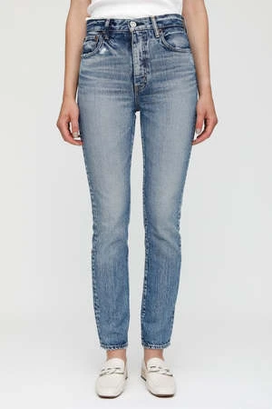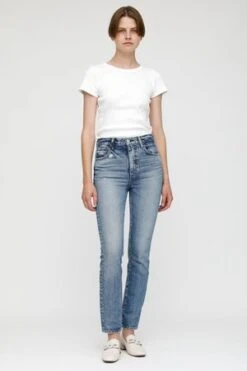 – Medium wash high-rise slim straight jean