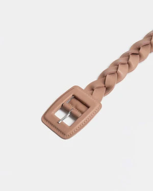 TRENZA is handmade braided leather belt with a lined buckle in a matching tone. The woven design allows the belt to be adjusted to different sizes. One size. Length: 100 cm.