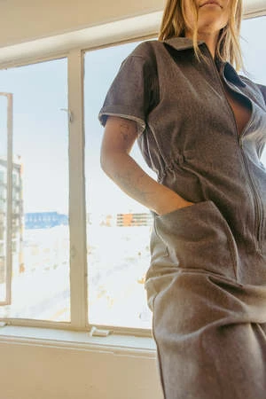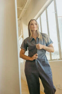 Noble’s signature Utility Suit is finally available for adults to make all of your twinning jumpsuit dreams come true. Made in Peru with durable yet buttery soft GOTS certified organic Pima cotton canvas. Features a cropped leg and cinched waist.