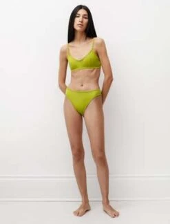 A chic pull-on bralette-style swim top in a vibrant green hue. Featuring thin straps and a fully lined construction, this versatile top can be paired with almost any style of bottom. Its simple cut offers a sense of casual, refined style and ample support.