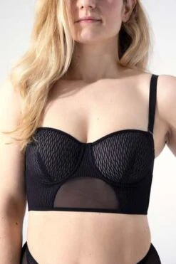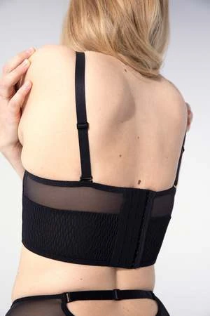 This strapless bustier bra is a supportive utility player for your favorite party dresses, and also looks great under a jacket or low cut top for a lingerie as outerwear look. The exquisite fit of the balconette cup features a spacer cup for nipple coverage and shape. The luxurious Italian powermesh and side boning keep everything smooth and in place. Detachable straps add versatility and unique styling details give this bra a fashion-forward finish.
