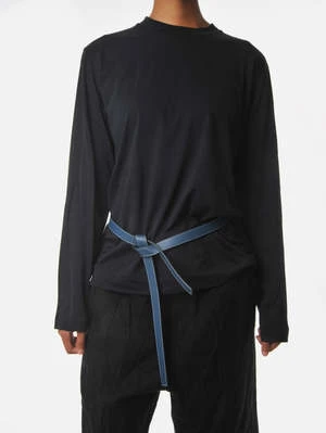 The slim Phi wrap Belt is a signature style of the brand. Using up-cycled leather from luxury houses in France it is elegant and also infinitely useful. It ties like the tiny Greek letter Phi – the name given to the golden section. Handmade in France in luxury leather goods workshops by French craftsmen using full grain calf leather.