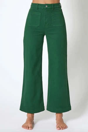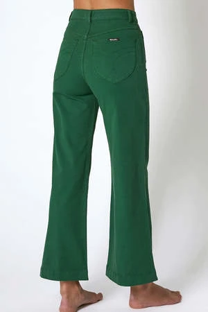 The Sailor Jean in Laura Stripe is a super high-rise, wide leg jean, made with a stretch drill denim. Features Rollas signature sailor patch pockets on the front, back pocket stitching and zip closures. Designed to be worn tight and will soften with wear.