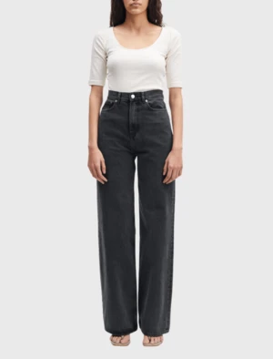 The Samsoe Samsoe Rebecca Jean in Black Dust is the wide legged jean of our dreams. With five-pocket western styling, zip fly, belt loops and a lightly faded wash, these jeans are composed of an organic cotton and recycled cotton blend. We think the would look amazing on you – why not pair with a cropped knit and sneakers?