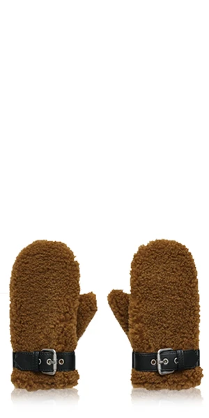 Stay warm in style with Stand Studio’s Ashlyn Mittens. Crafted from teddy-style faux fur and faux leather, these mittens offer a luxurious feel, complete with a faux leather buckle belt-detail and a fleece lining for extra insulation.