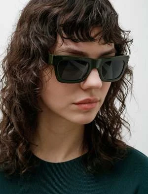 The Greta offers a slightly thicker square frame, made bold by the solid green acetate frame. Finished with Carl Zeiss lenses that offer 100% UV protection, these sunnies come in a faux leather hard case.