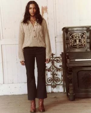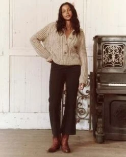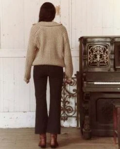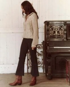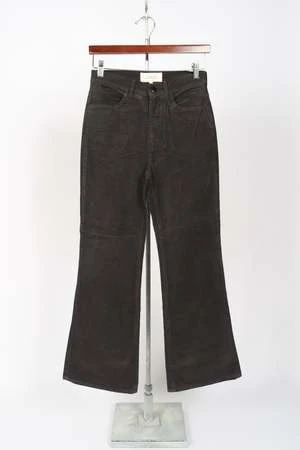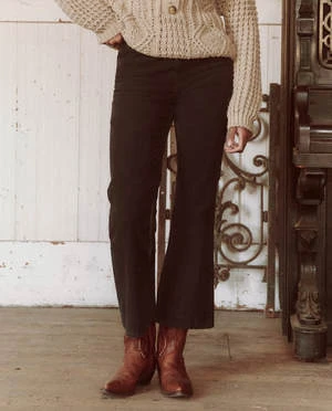 Designed to fit snug through the hips with a dramatic cropped kick flare at the hem, the high-rise design nods to vintage 70s bell bottoms. The silhouette has been updated for right now in a soft textured cord with a hint of stretch, in an earthen palette of garment-dyed colors with beautiful highs and lows reminiscent of Fall landscapes. Finishing details include a square top block, perfectly cropped length, and a corozo button at the waistband.