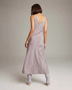 Bias cut silk crepe slip elegantly drapes on the body. Featuring an elongating V Neck at the front and back.